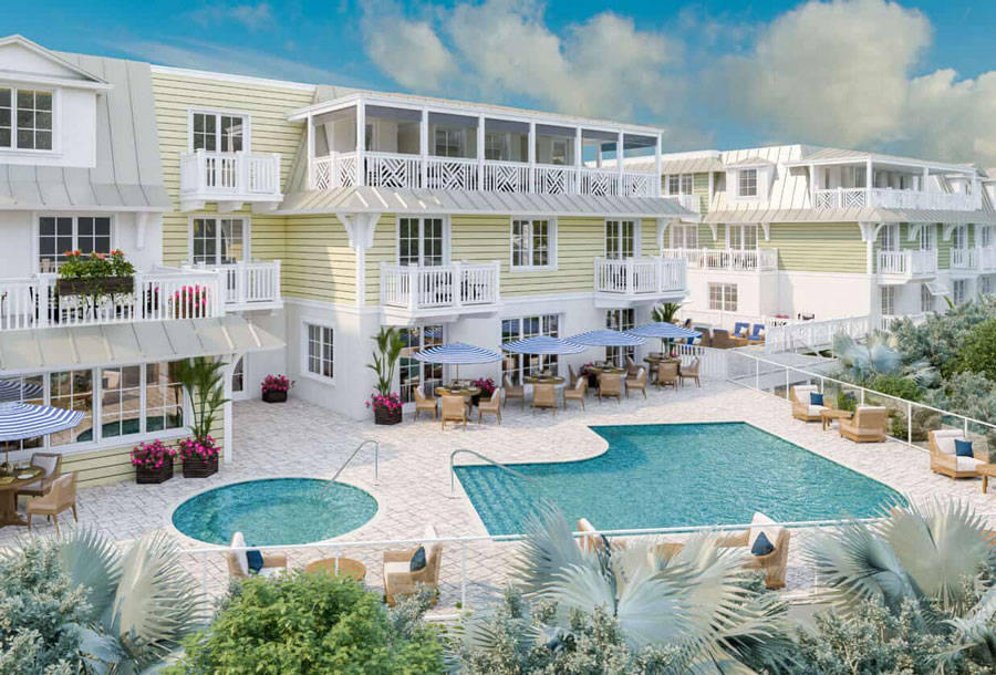 The project’s design emphasizes Florida Keys architecture, incorporating cast-in-place concrete with post-tensioned decks and a stucco finish, all supported by pile foundations to ensure stability in the coastal environment.